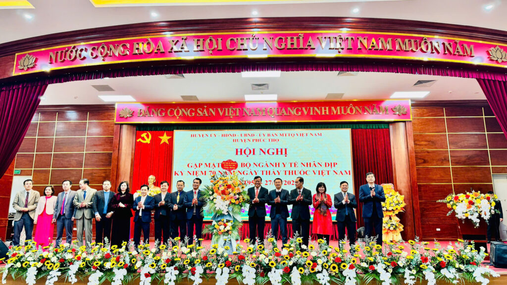 Nhân dịp kỷ niệm 70 năm Ngày Thầy thuốc Việt Nam (27/02/1955 – 27/02/2025) đại diện lãnh đạo Huyện ủy – Hội đồng nhân dân – Ủy ban nhân dân – Ủy ban Mặt trận Tổ quốc Việt Nam huyện Phúc Thọ, các phòng, ban, ngành huyện Phúc Thọ; Đảng uỷ – Uỷ ban nhân dân các xã, thị trấn; các đơn vị, tổ chức và cá nhân đã đến thăm, dự lễ kỷ niệm, tặng hoa và gửi những lời chúc mừng tốt đẹp nhất đến các cán bộ Y tế đang công tác tại Trung tâm Y tế huyện Phúc Thọ nhân ngày truyền thống Ngành Y tế.