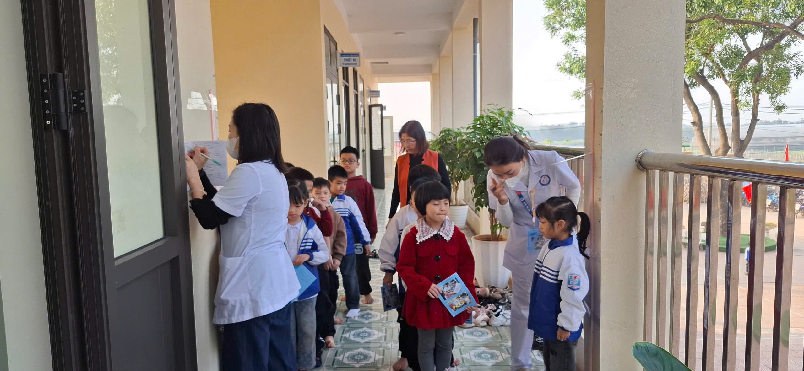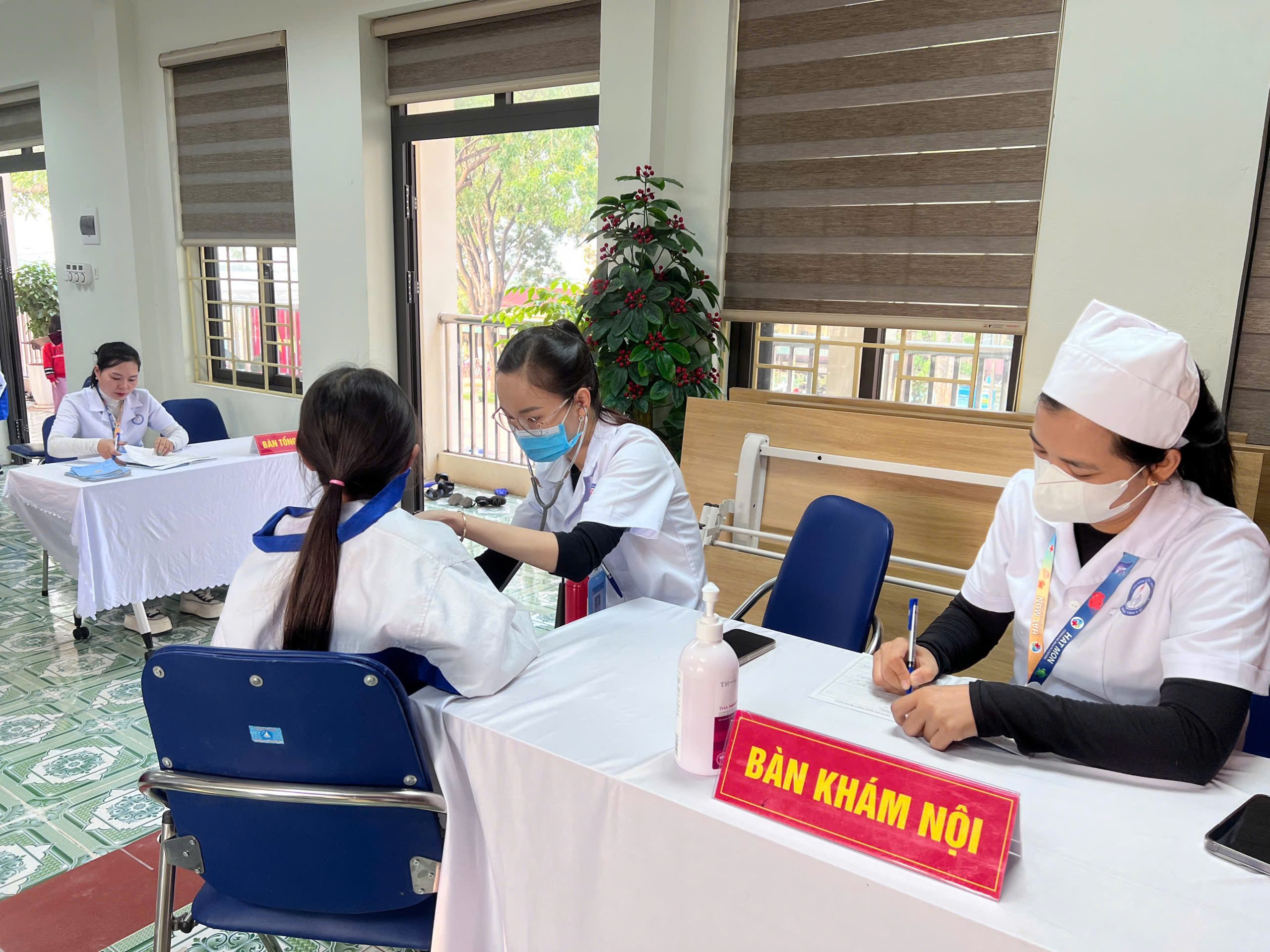 Ngay từ đầu buổi sáng, đội ngũ y tế đã có mặt để tổ chức khu vực khám, chuẩn bị dụng cụ chuyên môn và phối hợp cùng nhà trường sắp xếp các lớp theo khung giờ, đảm bảo quá trình thăm khám diễn ra trật tự và không ảnh hưởng đến hoạt động dạy – học.