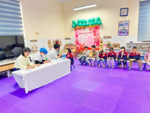 Buổi khám nhận được sự chuẩn bị chu đáo từ phía nhà trường, giáo viên hỗ trợ các bé xếp lớp nhẹ nhàng, từng bé đi khám trong tâm thế vui vẻ, không lo lắng. Nhiều phụ huynh cũng bày tỏ sự an tâm và hài lòng khi con được theo dõi sức khỏe định kỳ ngay tại trường, không phải di chuyển hay chờ đợi lâu.