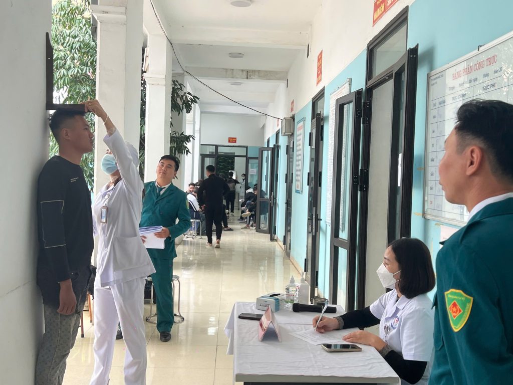 Tại buổi khám, các công dân trong độ tuổi nhập ngũ được kiểm tra toàn diện về thể lực và sức khỏe ban đầu, bao gồm: đo chiều cao, cân nặng, thị lực, huyết áp, nhịp tim, hô hấp, cùng các chỉ số y khoa cần thiết khác. Các y, bác sĩ làm việc với tinh thần trách nhiệm cao, thực hiện khám sàng lọc kỹ lưỡng để đánh giá chính xác tình trạng sức khỏe từng công dân, làm căn cứ quan trọng cho vòng khám tuyển sức khỏe nghĩa vụ quân sự chính thức sau này.