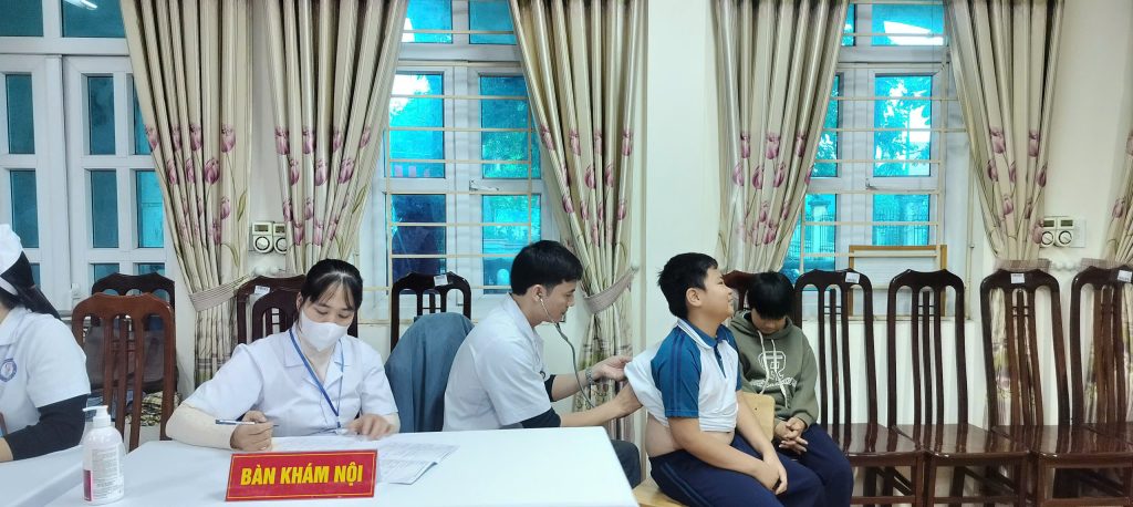 Buổi khám được triển khai với đầy đủ các bàn chuyên môn như: khám nội, khám tai – mũi – họng, khám mắt, khám răng miệng, đo chiều cao – cân nặng, kiểm tra thể lực… Mỗi học sinh đều được theo dõi, ghi chép và đánh giá cụ thể tình trạng sức khỏe, từ đó giúp phát hiện sớm các vấn đề thường gặp ở lứa tuổi học đường như cận thị, cong vẹo cột sống, thừa cân – béo phì, sâu răng, hay các bệnh lý khác để có hướng điều trị, phòng ngừa kịp thời.